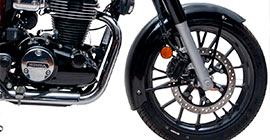 Motor mono cilíndrico 4 tiempos, SI, BS-VI Motor. Sistema de iluminación Full LED. | 348.3 CC. Sistema de enfriamiento por aire. Transmisión de 5 velocidades. | Sistema de arranque eléctrico. Sistema de frenos ABS de doble canal.