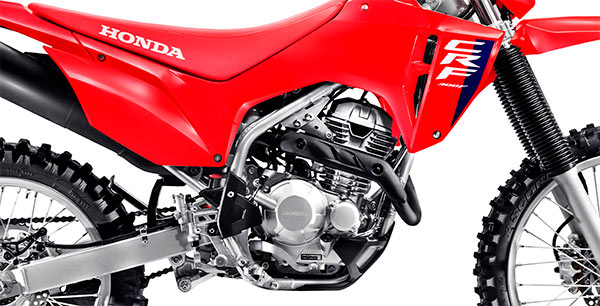 Motor OHC, monocilíndrico, de 4 tiempos. Desplazamiento 293.52 cc. | Encendido completamente transistorizado con ECM (Engine Control Module). | Transmisión de 6 velocidades tipo retorno. Inyección electrónica (PGM-FI).